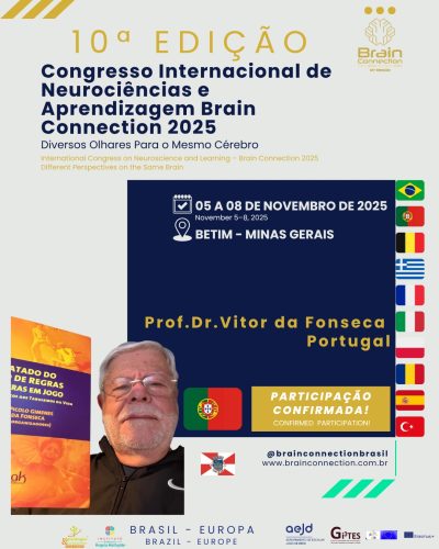 | 8h30 CURSO INTERNACIONAL | Prof. Dr. Vitor da Fonseca PORTUGAL | “Uma Abordagem Neurocientífica da Aprendizagem”. | Curso: Capacitar profissionais da educação e da saúde a compreenderem como o cérebro aprende e aplicar estratégias neuro cientificamente embasadas para otimizar a aprendizagem e o desenvolvimento integral. | sala 2 |