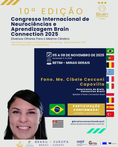 | 15h:30 CURSO NACIONAL | Fono. Me. Cibele Cecconi Capovila | Confirmado | Aguardem surpresas transformadoras! | Sala 1 |